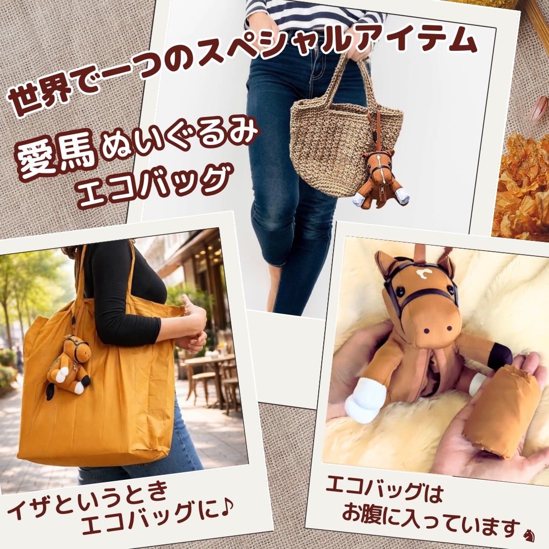 見た目の愛らしさと エコバッグの実用性を兼ね備え、地球に優しく、大好きな愛馬といつも一緒に...♡