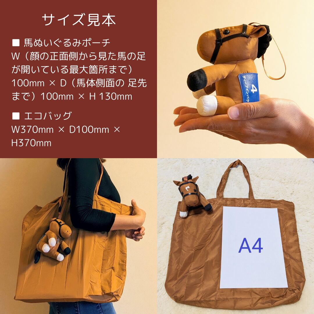 ※ こちらの 馬型ぬいぐるみエコバッグは、株式会社カメラの三和 の意匠登録済商品です(意匠登録第1710949号)