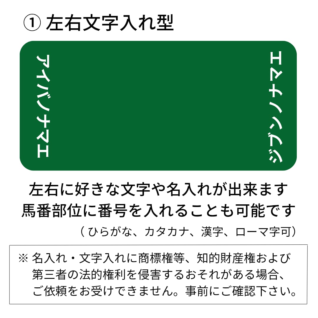 〇 ゼッケンに名入れを希望しない場合は、シンプルなカラーゼッケンでも制作も可能です。https://umabag.official.ec/items/74117100