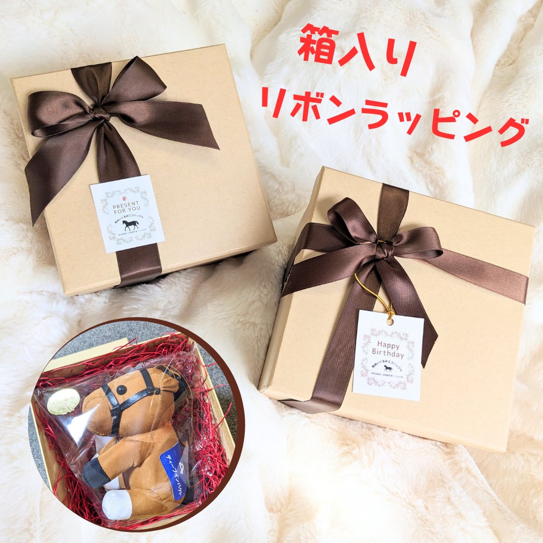 馬ぬいぐるみエコバッグ® の箱入りリボンラッピングです。